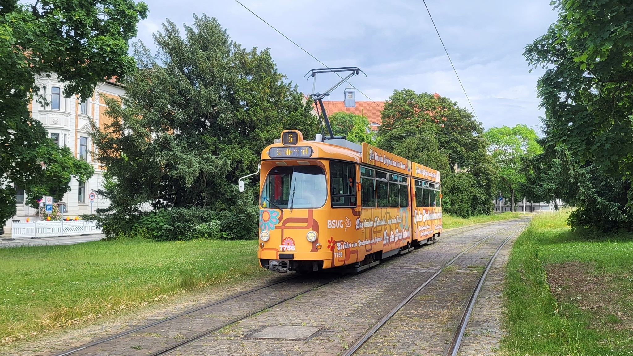 Ende November 2025 läuft die HU von 7756 ab. Der Vorstand hat sich bei der BSVG dafür eingesetzt, dass dieses Fahrzeug nochmal eine HU erhält. Die Entscheidung darüber ist noch nicht gefallen. Aber auch wenn sie positiv ausfällt, wird es wegen der hohen Auslastung der Straßenbahn-Werkstatt sicherlich eine Zeit dauern, bis er wieder zur Verfügung steht. Daher wollen wir die Gelegenheit nutzen, mit 7756 nochmal eine Rundfahrt zu machen, bevor er (hoffentlich nur vorübergehend) abgestellt wird.