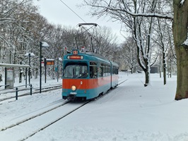 Angesichts der Witterungsverhältnisse verwunderte es allerdings nicht, dass die Beteiligung gegenüber den Vorjahren zurückblieb. Zwar waren die Leisewitzstraße und der Lessingplatz noch nicht befahrbar, so dass wir umdisponieren mussten, doch alles hat gut geklappt. So fuhren wir zunächst zum Inselwall, machten eine Runde am Hauptbahnhof und anschließend ging es nach Volkmarode. Nach der Glühwein- und Würstchenpause mit Souvenirverkauf im Tram-Depot haben sich alle Fahrgäste in 41 eingefunden, so dass die Schlussrunde in den Heidberg nur mit einem Fahrzeug befahren wurde.