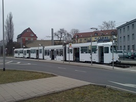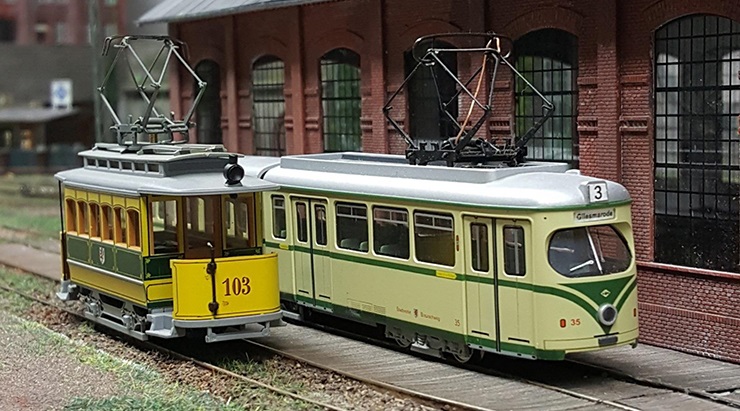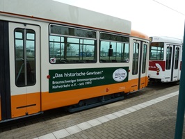 Vor der Jahreshauptversammlung 2015 fand wieder das traditionelle Einrollen statt, diesmal mit einer ganz besonderen Fahrzeugkombination. Mit Sondergenehmigung des Vorstandes der BSVG fuhr Tw 0051 mit dem Bw 7775 durchs Netz.