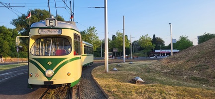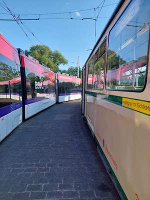 Die Route führte uns vom Start an der Georg-Eckert-Straße über Schloss und John-F.-Kennedy-Platz zur Schleife am Hauptbahnhof. Von dort ging es weiter über Willy-Brandt-Platz und Ackerstraße zum Tram-Depot.