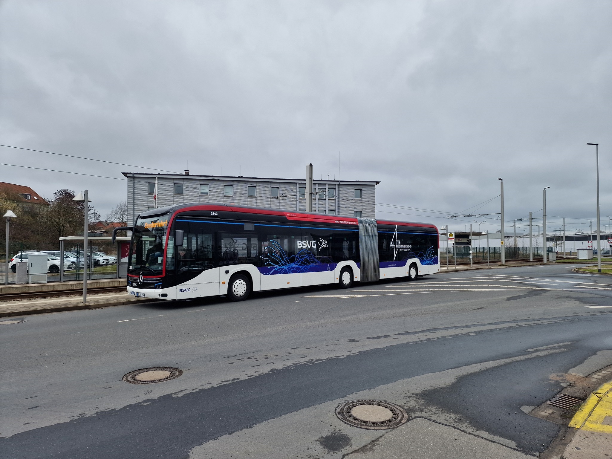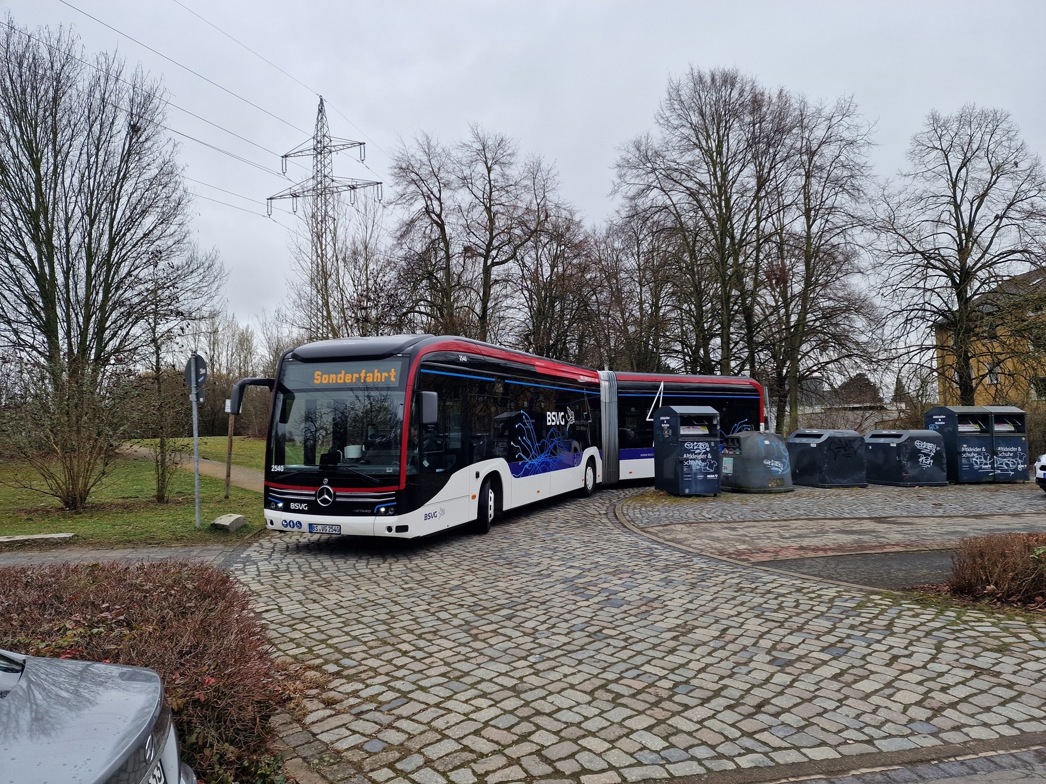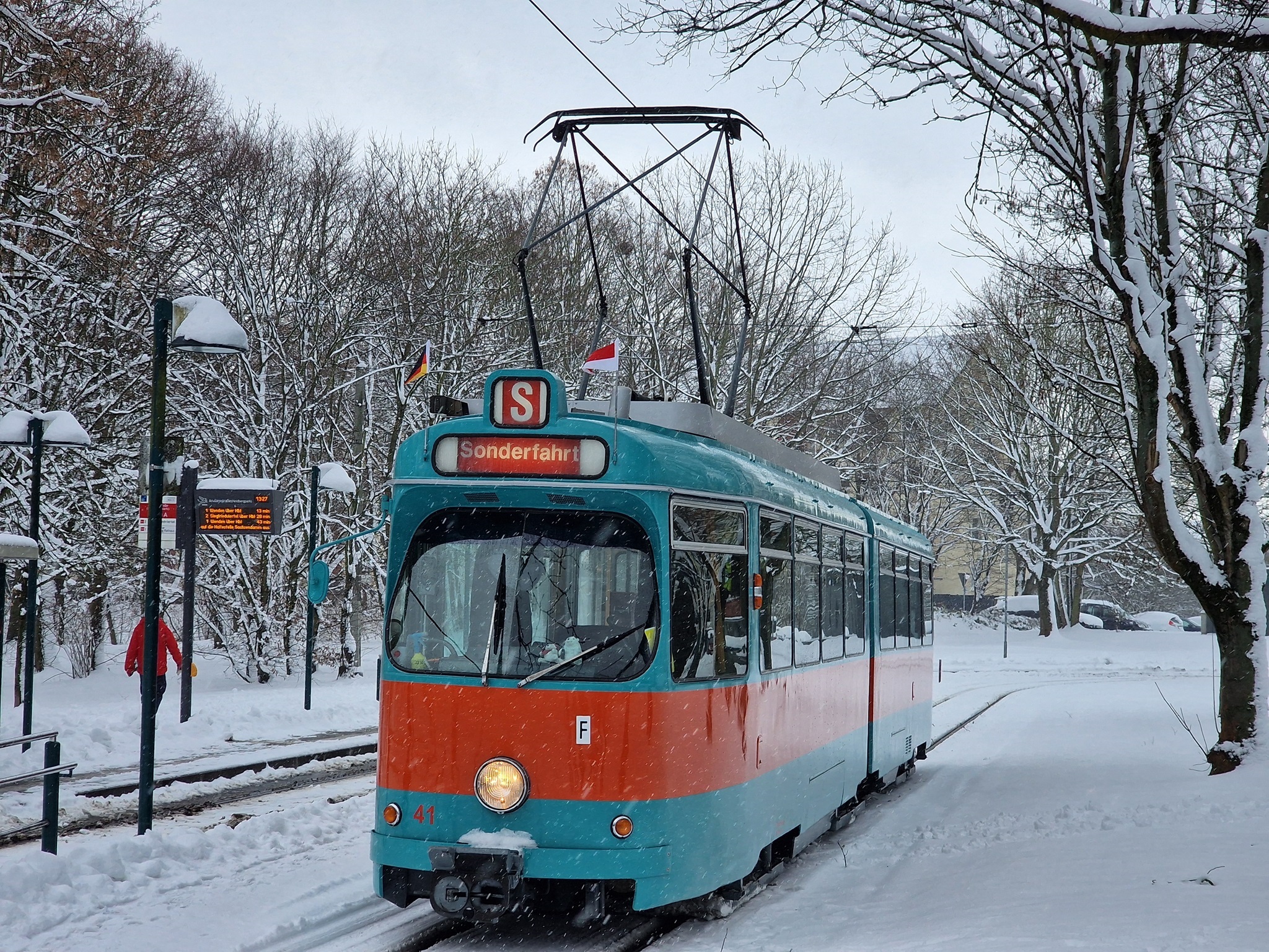 In der Nacht zum 04.01.2026 hatte es ordentlich geschneit und der Stadtbahnbetrieb war zunächst eingestellt. Die Sorge war groß, dass unsere Neujahrsfahrt nicht stattfinden kann. Doch die BSVG hat nach und nach die Strecken geräumt und wir konnten wie geplant mit 41 und 9552 starten.