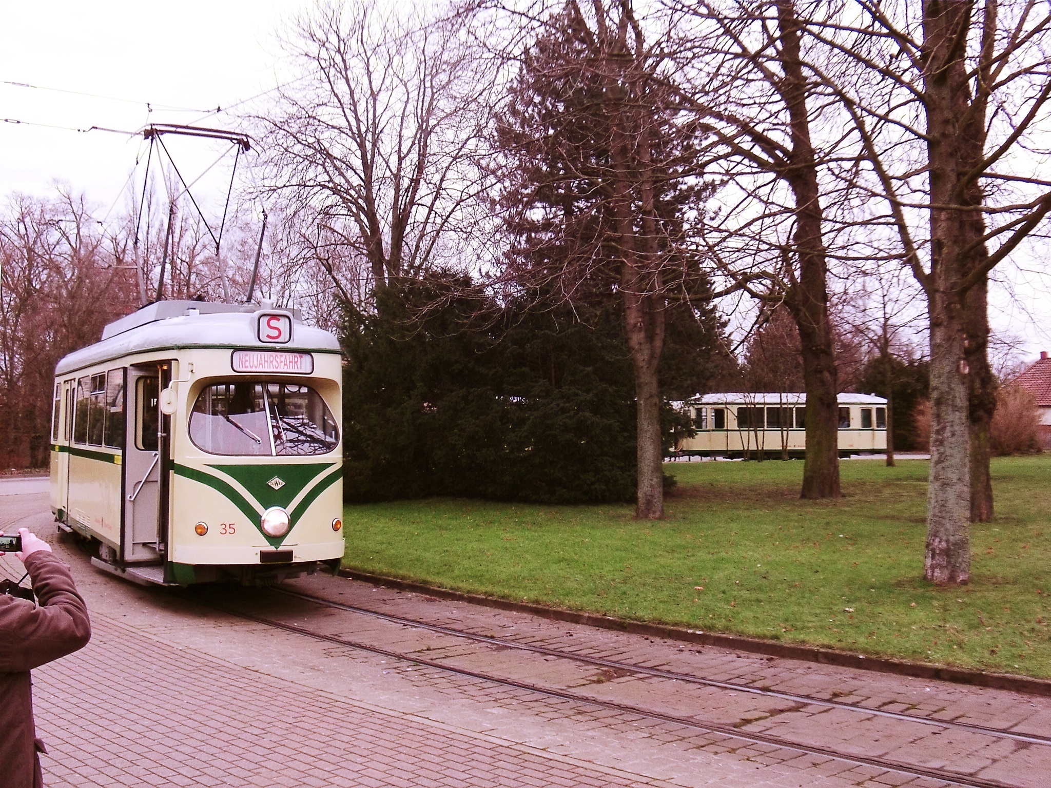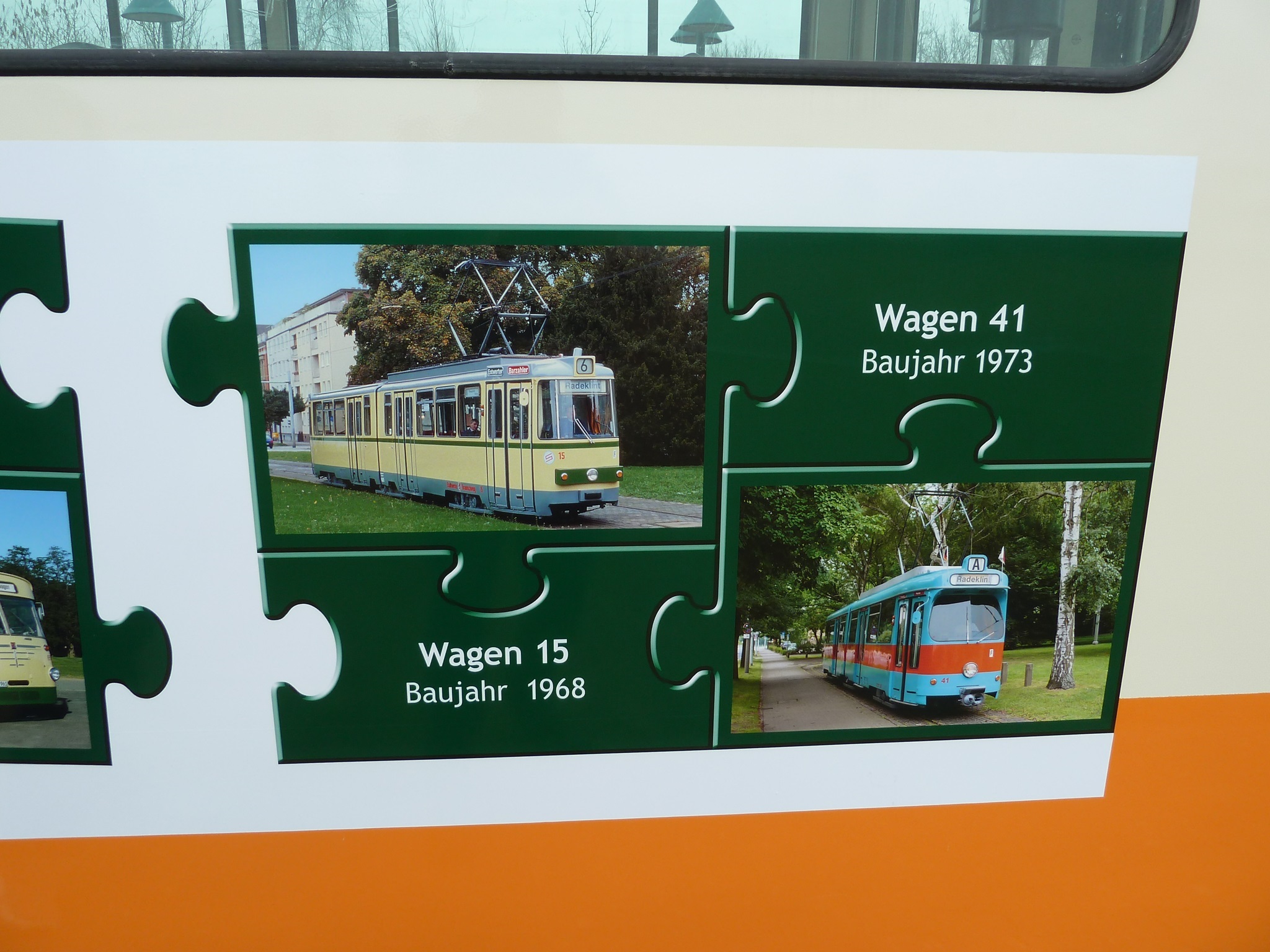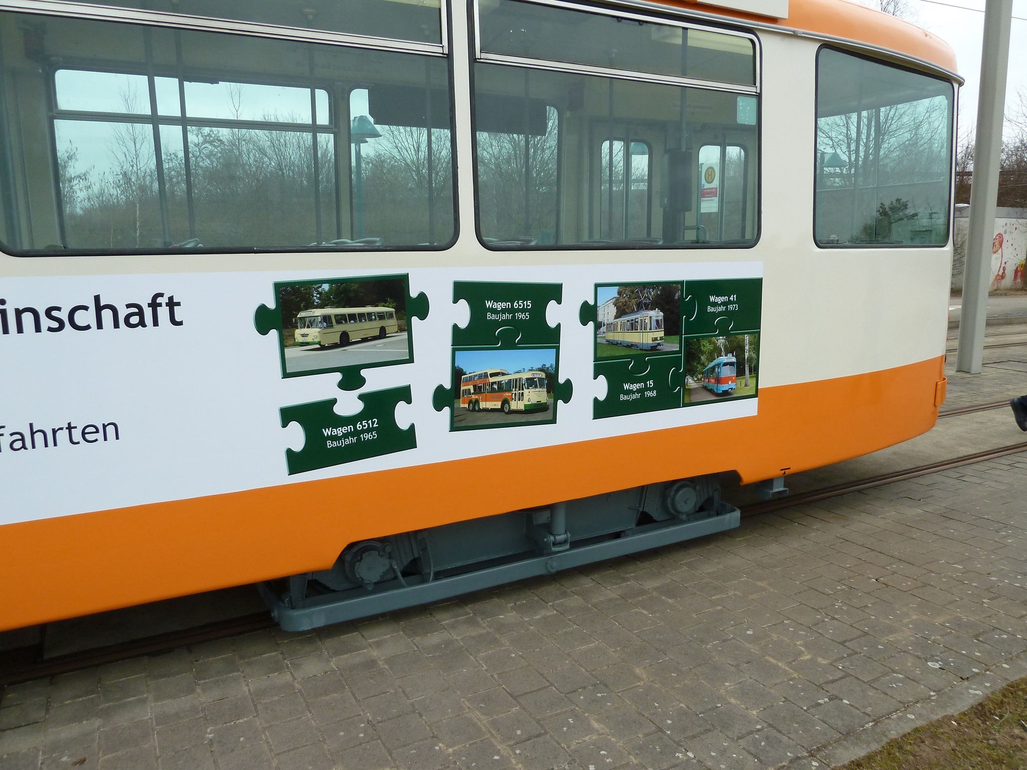 Vor der Jahreshauptversammlung 2015 fand wieder das traditionelle Einrollen statt, diesmal mit einer ganz besonderen Fahrzeugkombination. Mit Sondergenehmigung des Vorstandes der BSVG fuhr Tw 0051 mit dem Bw 7775 durchs Netz.