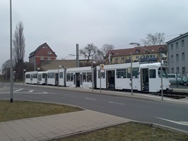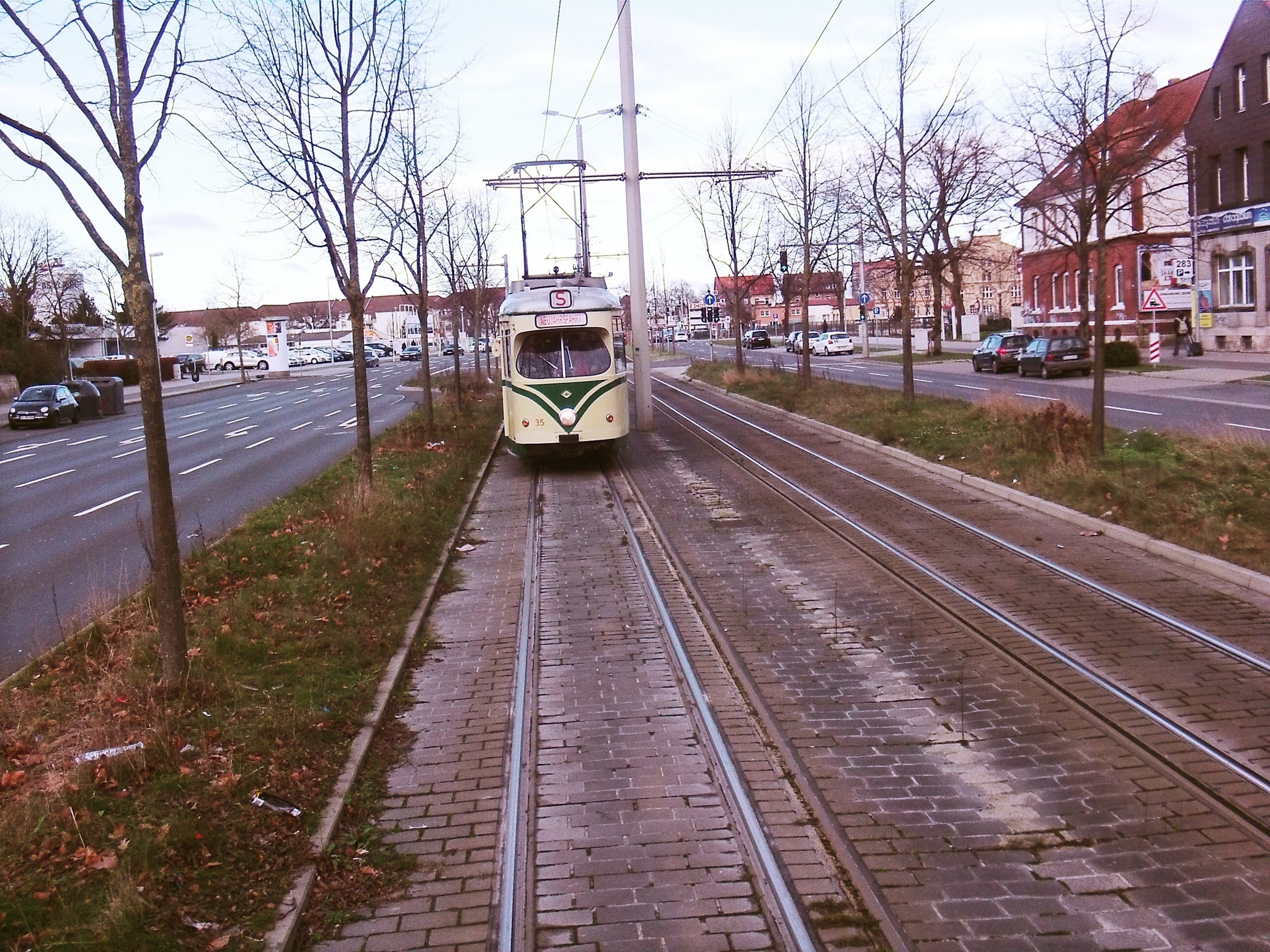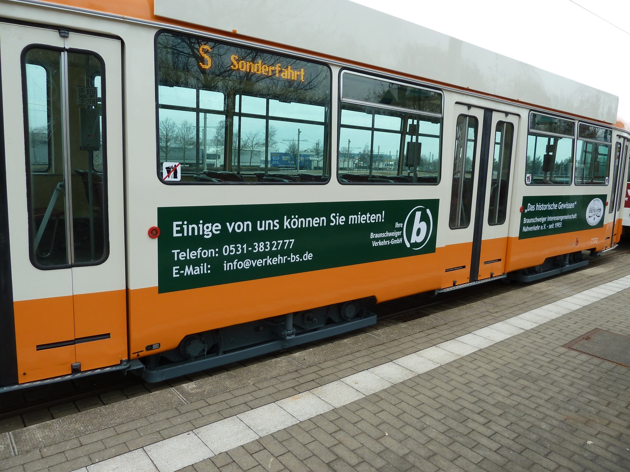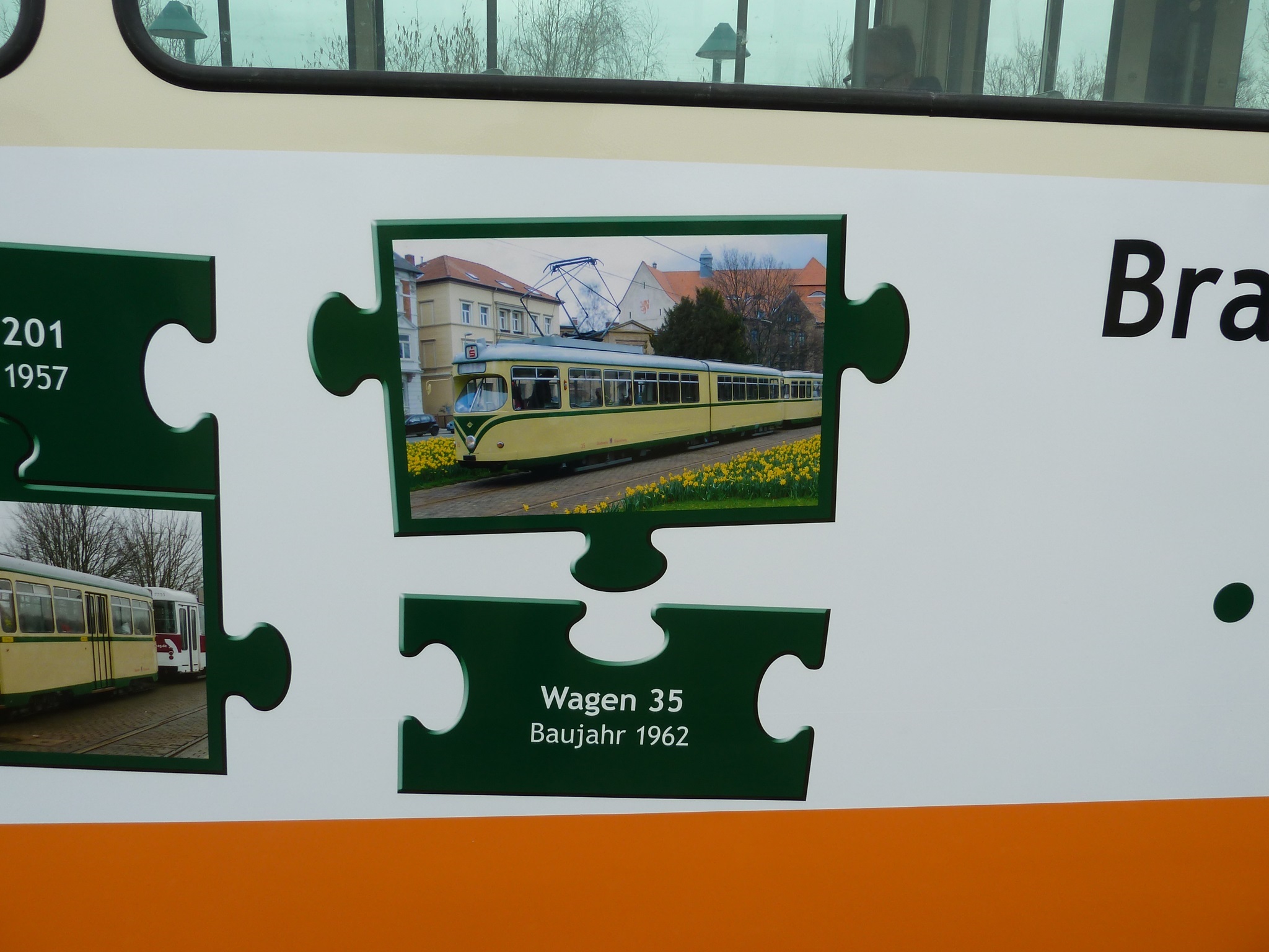 Vor der Jahreshauptversammlung 2015 fand wieder das traditionelle Einrollen statt, diesmal mit einer ganz besonderen Fahrzeugkombination. Mit Sondergenehmigung des Vorstandes der BSVG fuhr Tw 0051 mit dem Bw 7775 durchs Netz.